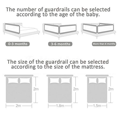 JC SUN 90CM Height Adjustable Folding Kids Safety Bed Rail/BedRail Cot Guard Protecte (200X90CM Single Side 1 PCS), Grey, 1 Count (Pack of 1) Item Sku: