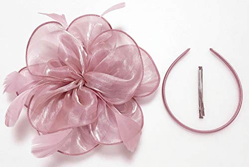 Z&X Fascinator Hat Flower Feathers on Headband and Clip Tea Party Headpiece for Ladies Girls Nude Pink, Fascinator 5- Pink, One Size Item Sku: