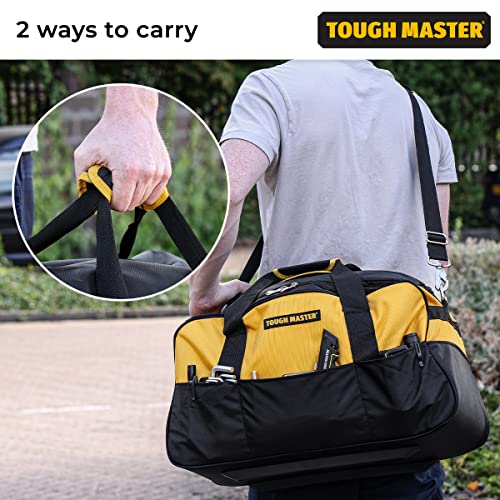Tool Bag 22" (60cm) Heavy Duty Waterproof Polyester Wide Space 7 Pockets Big Storage Oragniser (UK Brand TOUGH MASTER), Black and Yellow, 22" Item Sku:
