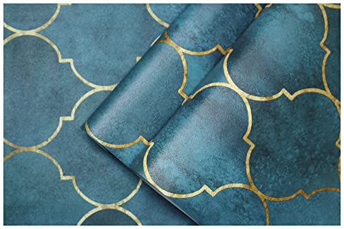 HaokHome 96034 Peel and Stick Wallpaper Graphic Trellis Emerald/Gold Removable contactpaper for Home Bathroom Decorations 0.45m X 3m, Emerald/Gold/Green/Blue, 0.45 X 3m Item Sku: