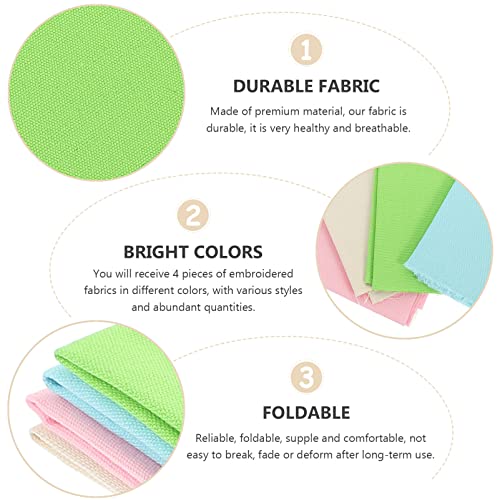VICASKY 4Pcs Linen Needlework Fabric, Assorted Colors Linen Embroidery Fabric Cross Stitch Cloth for Garments Crafts, Upholstery Flower Pot Decoration and Tablecloth, As Shown, 0.1X30X30CM