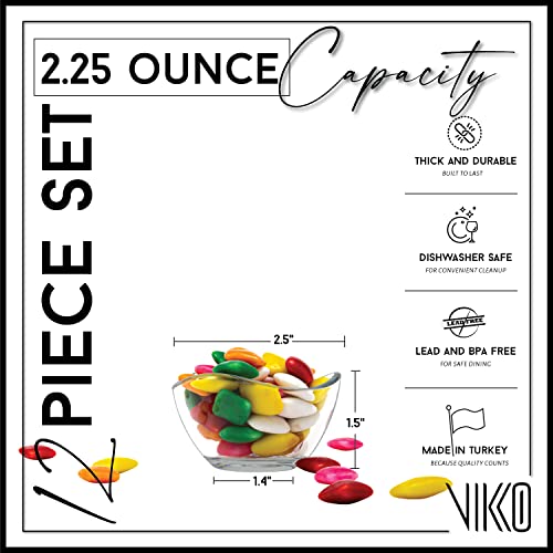 Vikko Glass Bowls, Set of 12 Decorative Glass Dessert Bowls, 2.25 Ounce Glass Dish for Dessert, Candy, Kitchen Prep, Dishwasher Safe