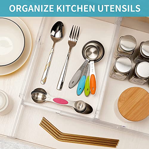PAKCHOICE 8 Pack Drawer Dividers Organizers, Adjustable 3.2" High Expandable from 11-20" Kitchen Drawer Organizer, Clear Plastic Drawers Separators for Clothing, Kitchen Utensils and Office Storage