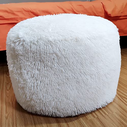 Unstuffed Ottoman Pouf Cover,Faux Fur Foot Stool,51x31cm Fuzzy Chair, Round Ottoman Seat, Floor Bean Bag Chair(No Filler),Foot Rest with Storage for Living Room,Bedroom,Office Cover ONLY (White)